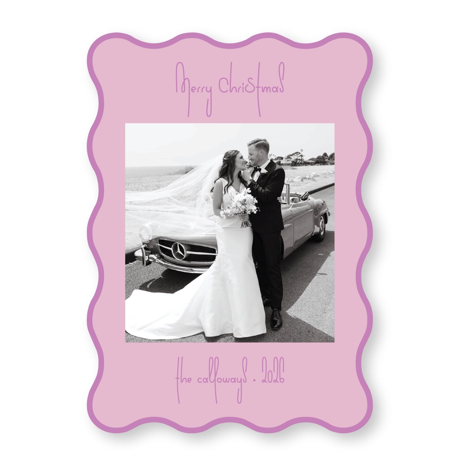 PRINTED Die Cut Holiday Card | Swirly Season in Purple Wavy Card | 5x7 Holiday Photo Card with Envelope