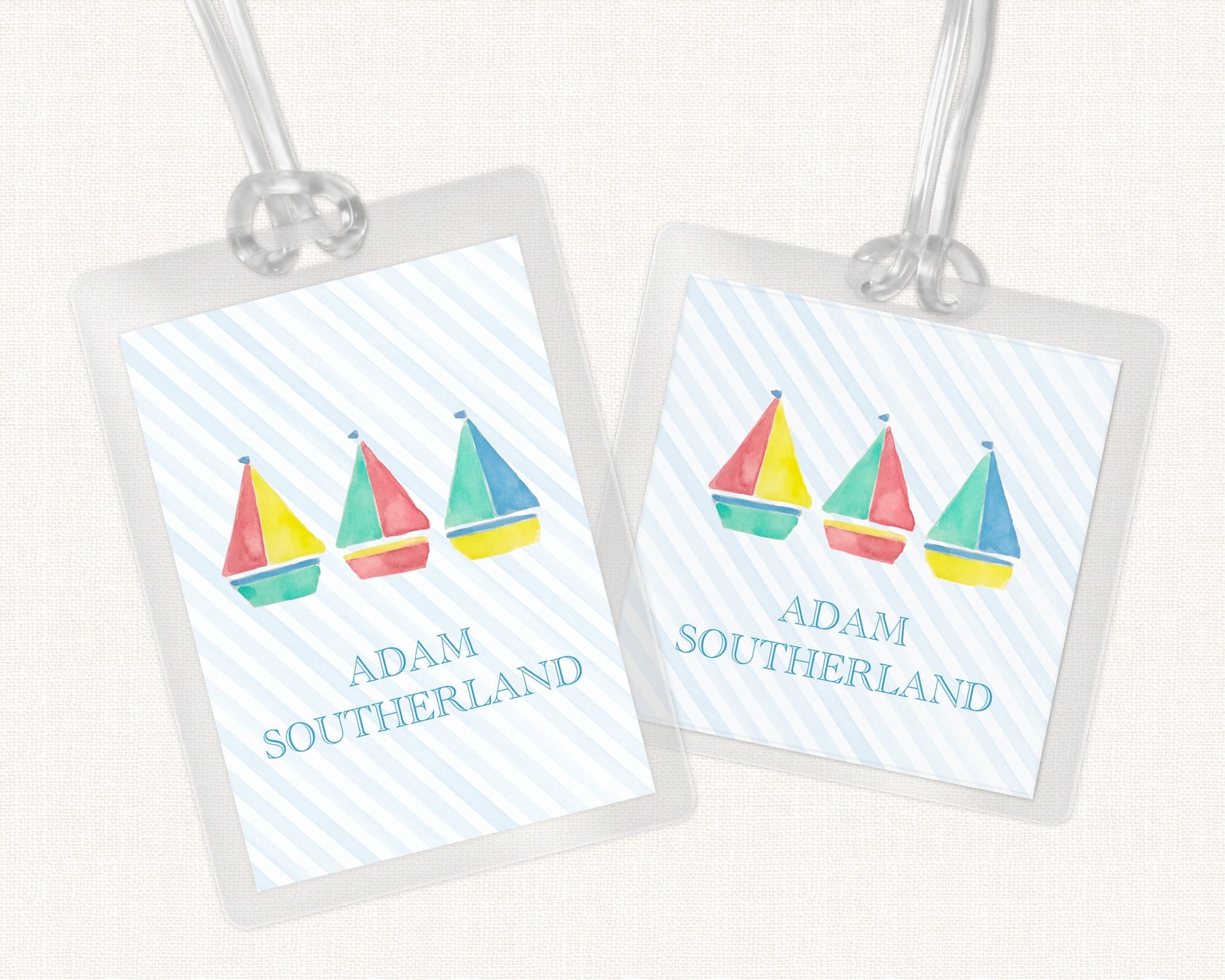 Sailboat Bag Tag, Luggage Tag, Boys Bag Tag, Laminated Bag Tag