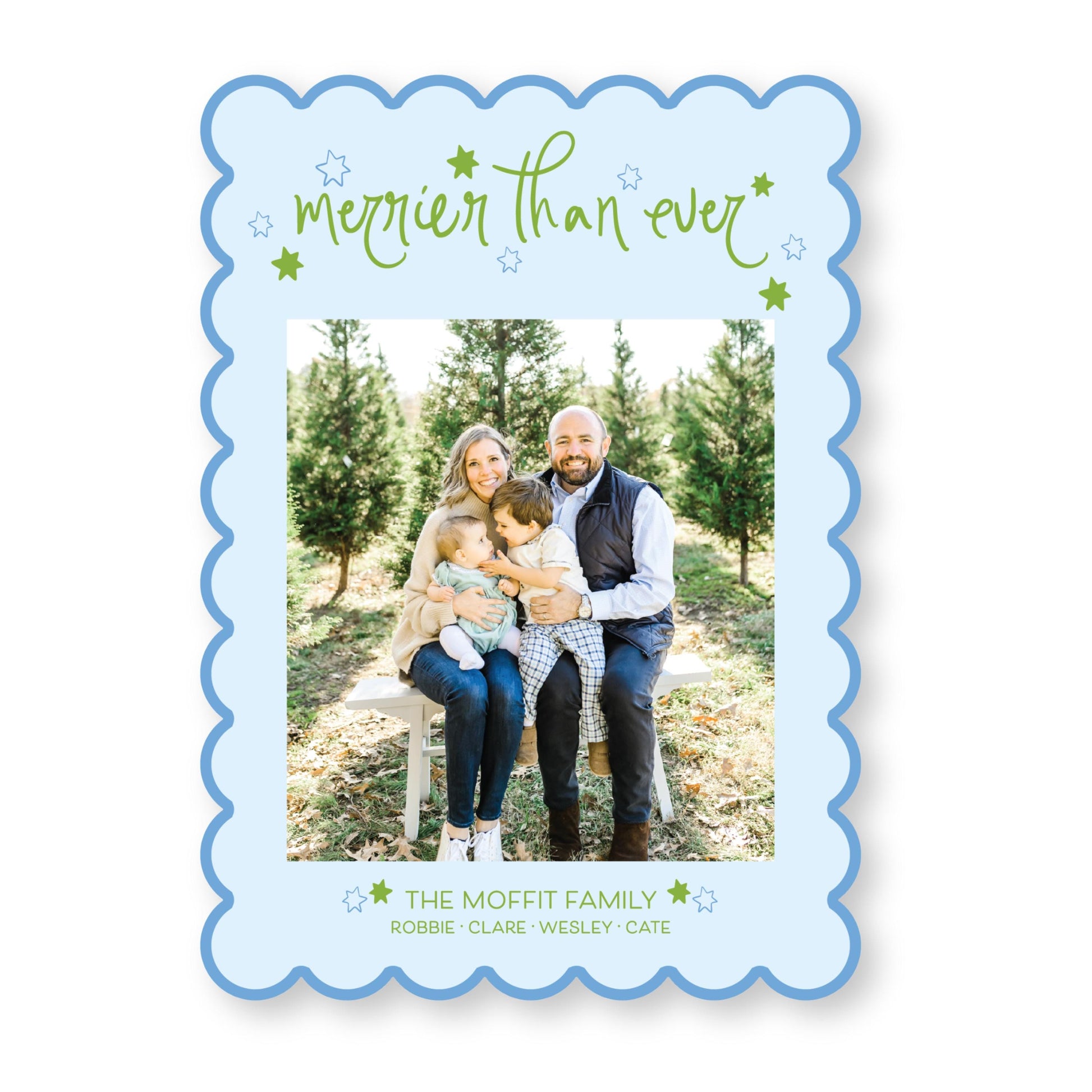 Starry Night Scallop Card in Bright Blue and Green | 5x7 Holiday Photo Card with Envelope
